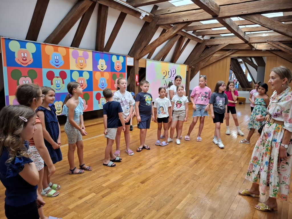 Prilikom obilaska izložbe mališani su imali priliku vidjeti devedeset radova nastalih u 20. i 21. stoljeću, izvedenih u različitim tehnikama – litografiji, serigrafiji, grafici, porculanu, C-printu, giclée tehnici, 3D predmetima, kolažu i 3D grafici, a saznali su i nešto više o ovim tehnikama i umjetnicima predstavljenima na izložbi. S obzirom da je ovdje riječ o skupnoj izložbi 24 istaknuta američka i europska predstavnika pop arta, među kojima se ističu Andy Warhol, Roy Lichtenstein, David Hockney, Jim Dine, James Rizzi, Fernardo Bellver i drugi, mališani su naučili nešto i o ovim velikim imenima likovne umjetnosti, promatrajući njihova djela.