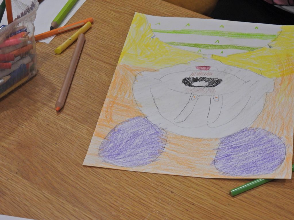 U kreativnom dijelu, polaznici radionice prisjetili su se motiva viđenih na izložbi te su služeći se bojicama, flomasterima i pastelama izradili svoje asocijacije na izložbu naziva Poljubi me očima/ Kiss me with your eyes.