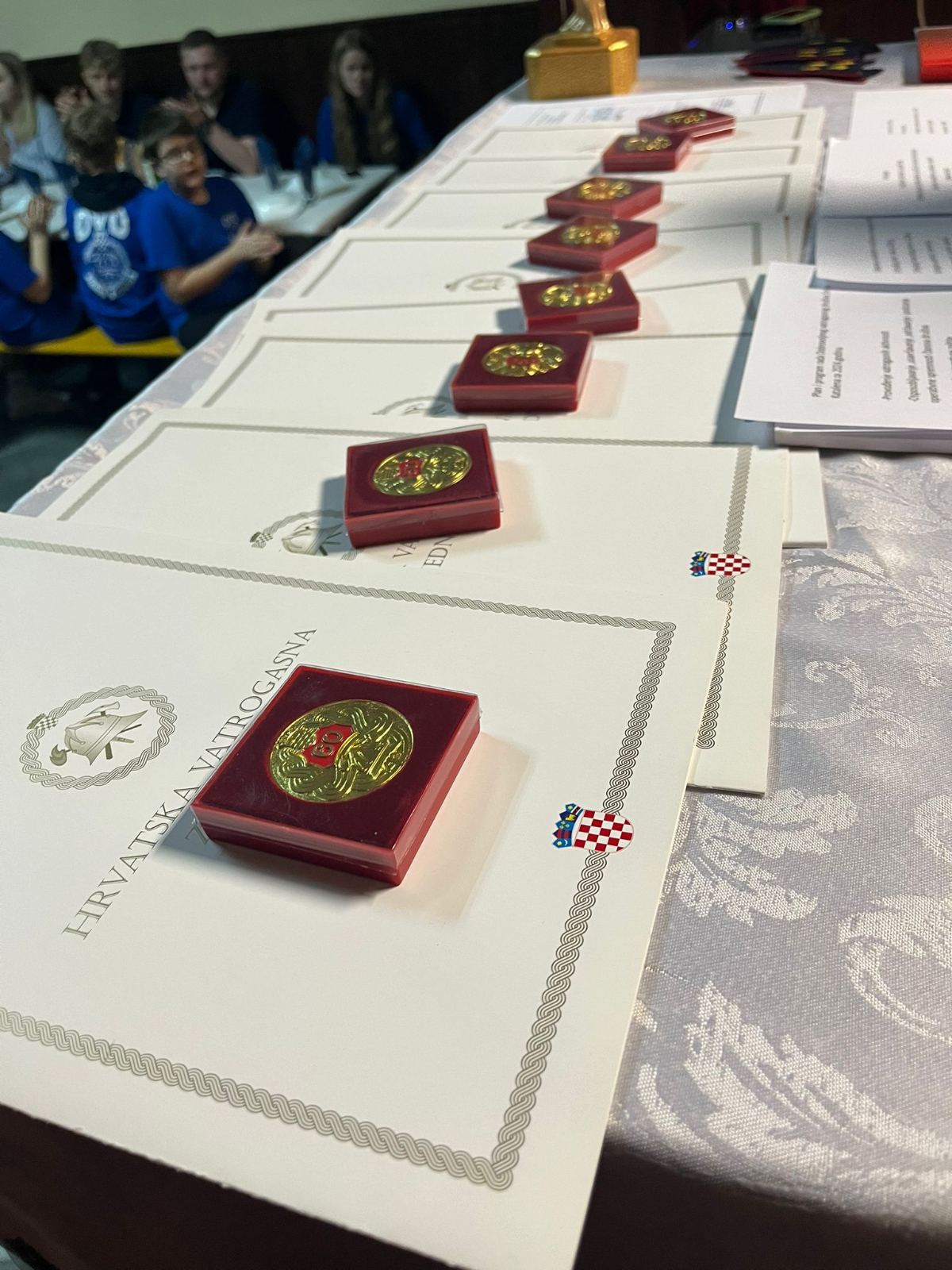 Matija Markešić se zahvalio svim polaznicima tečaja za vatrogasna zvanja i uručio im diplome, siguran, kako je rekao, da će stečena vatrogasna zvanja bili velika pomoć u svim budućim vatrogasnim akcijama, te im čestitao i pohvalio ih za interes.