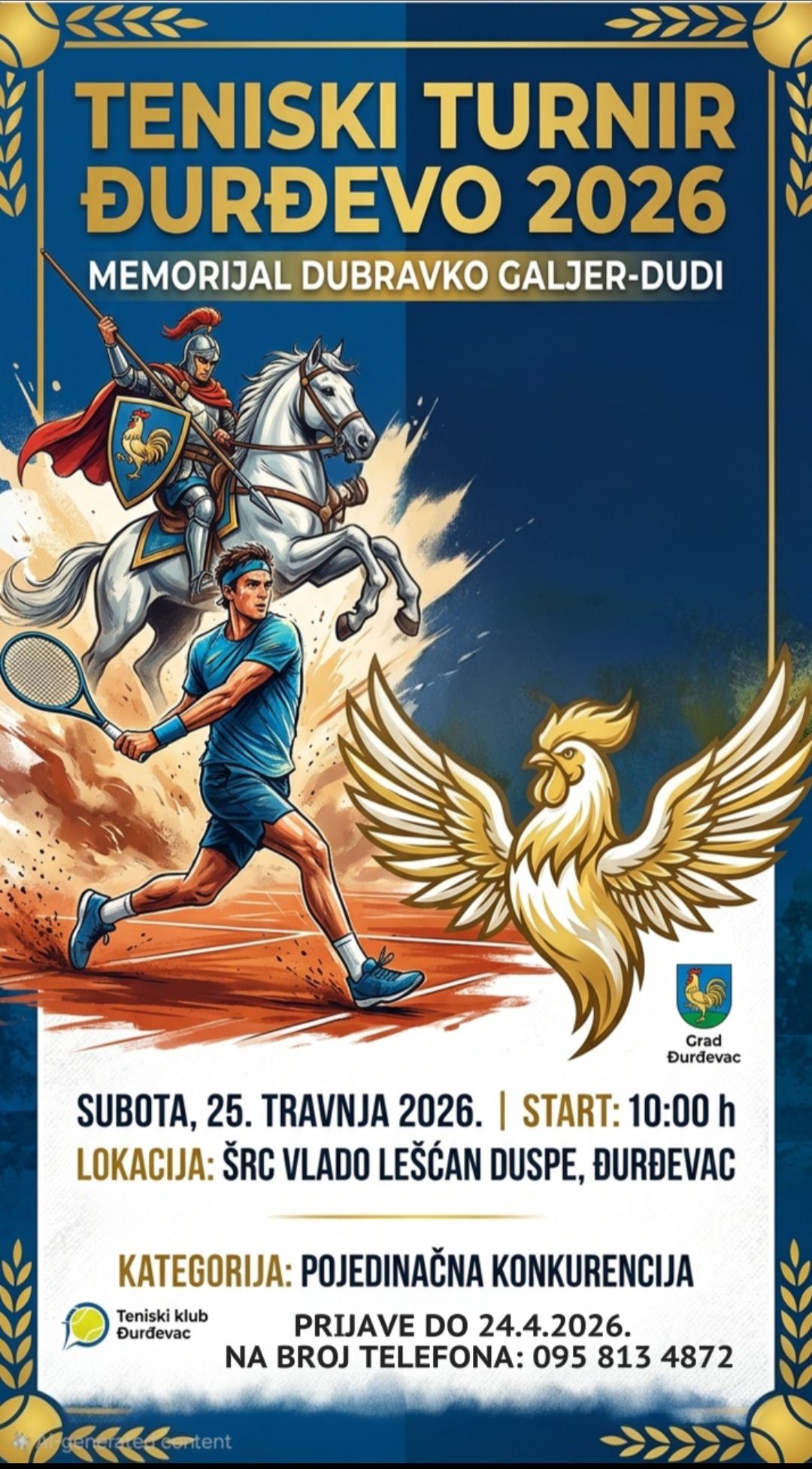 U Đurđevcu je u tijeku Teniski turnir Đurđevo 2026 – Memorijal Dubravko Galjer – Dudi, koji je i ove godine okupio brojne ljubitelje tenisa i sporta. Turnir se održava na terenima ŠRC-a Vlado Leščan Duspe, a natjecatelji se nadmeću u pojedinačnoj konkurenciji.