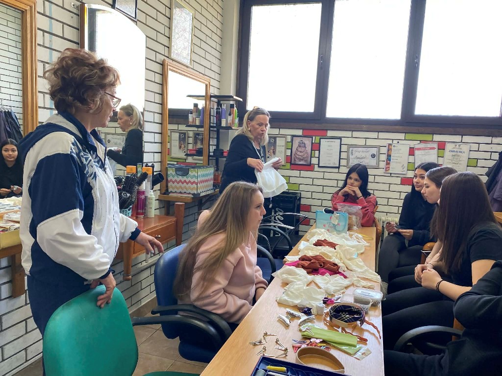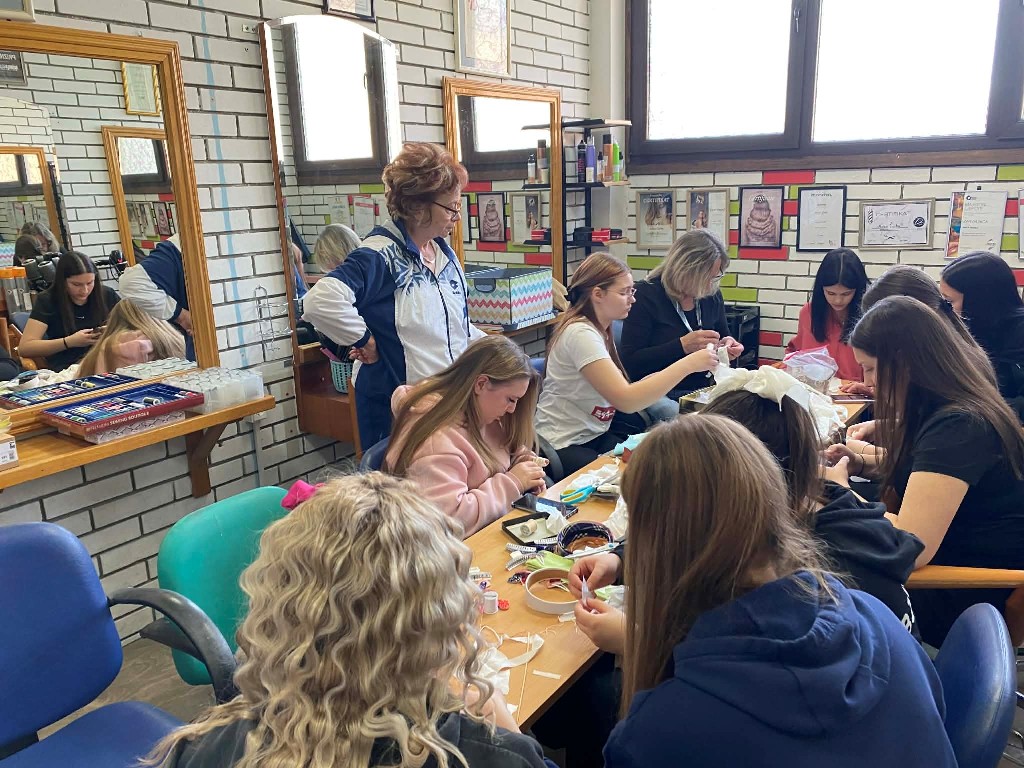 Tijekom radionice učenici su imali priliku upoznati tehniku izrade dekorativnih ukrasa od svile, poput cvjetova, mašni i drugih detalja koji se mogu uklopiti u različite frizure. Kroz praktičan rad razvijali su kreativnost, preciznost i osjećaj za estetiku, a izrađene ukrase koristili su kao dodatak pri oblikovanju svečanih i modnih frizura. Na taj su način povezali izradu ukrasa s njihovom primjenom u frizerskoj struci te stekli dodatne vještine za kreativno oblikovanje frizura.