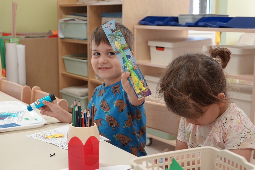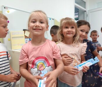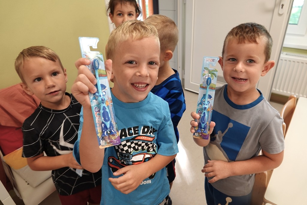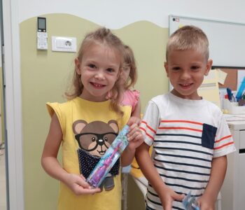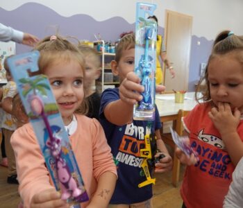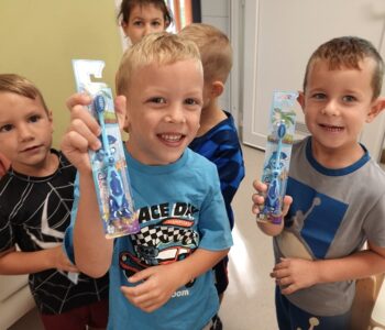 Djeca su s veseljem birala boju i oblik svojih četkica, a potom su radosno pokazala kako pravilno peru zubiće. Nakon toga, brižno su svoje nove četkice spremila u ormariće.